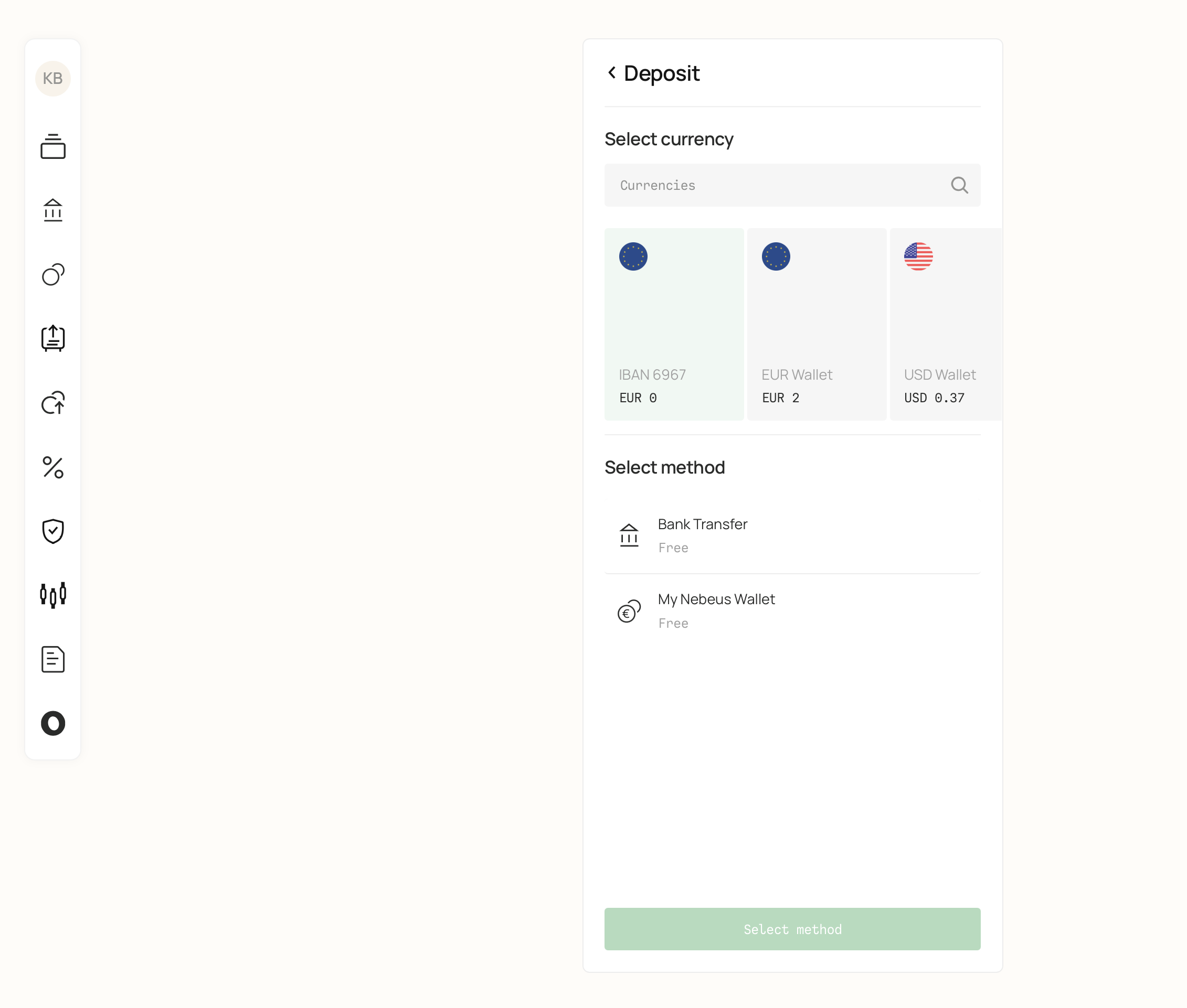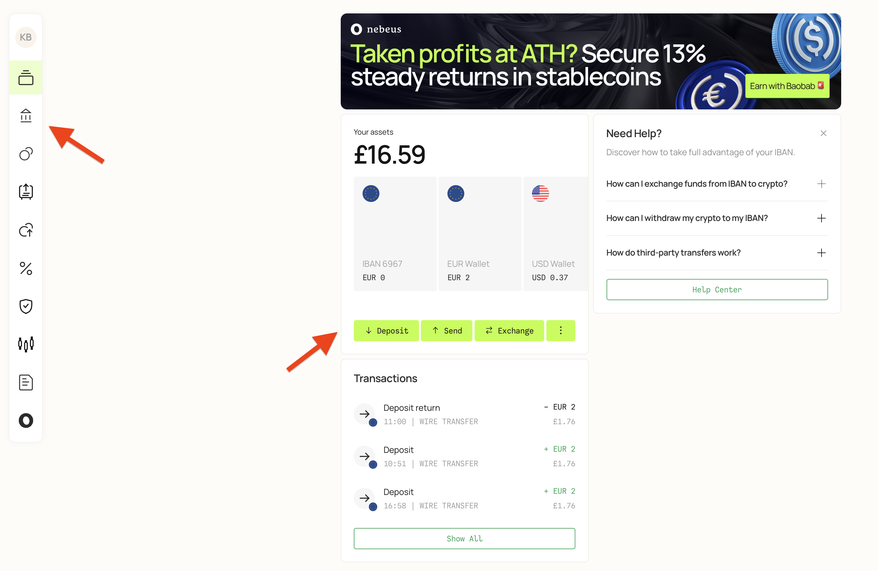 Go to the Deposit section and select IBAN, or navigate directly to the IBAN section from your dashboard.