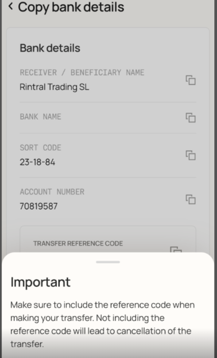 Important: Please ensure all payment details are entered correctly — especially the Payment Reference ID. If any information is missing or incorrect, we won’t be able to match the deposit to your account. In such cases, the funds will be refunded to your bank, but please note that a 0.5% processing fee will still apply.