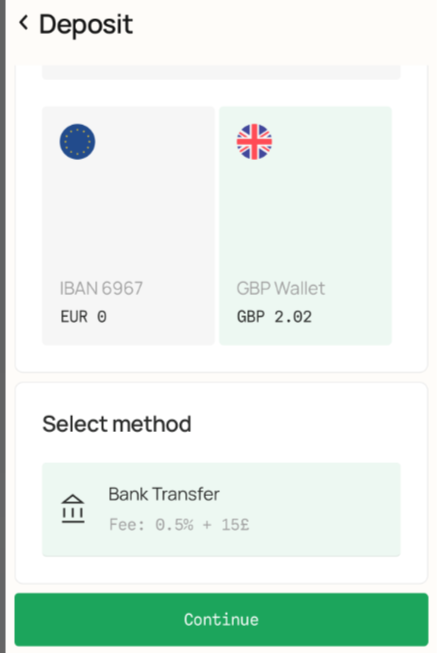 If you’re not eligible for a personal IBAN, or prefer to wait before creating one, you can still fund your GBP Wallet via SEPA bank transfer using an alternative method.