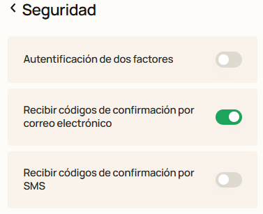 2."Recibir códigos de confirmación por correo electrónico"