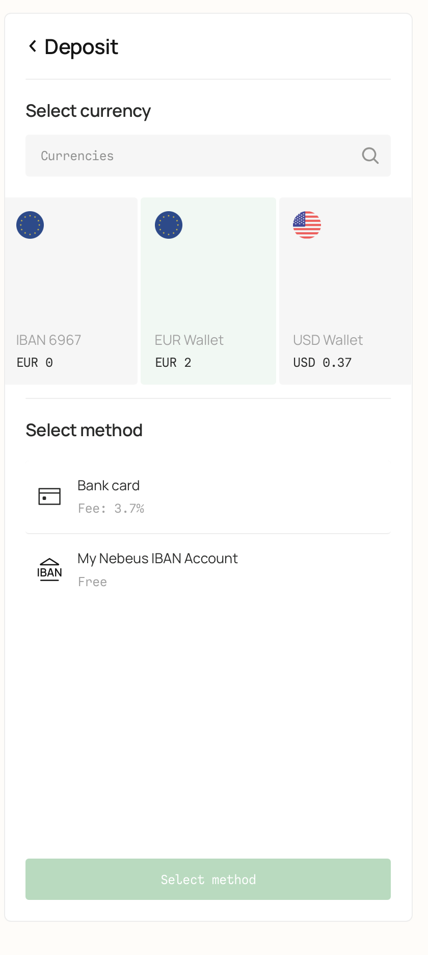 Una vez completado el proceso, los fondos estarán disponibles de inmediato en tu Wallet en EUR, listos para usar en cualquiera de los servicios de Nebeus.